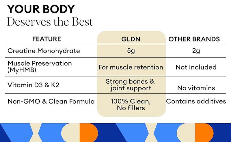 GLDN CREATINE + HMB with Vitamin D3 and Vitamin K2 for GLP Reaction Support